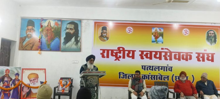 राष्ट्रीय स्वयंसेवक संघ पत्थलगांव द्वारा किया गया "शहीदी सप्ताह" पर व्याख्यान का आयोजन... मुख्य अतिथि के रूप में उपस्थित हुए गुरु सिंह सिख सभा पत्थलगांव के अध्यक्ष एवं सदस्य
