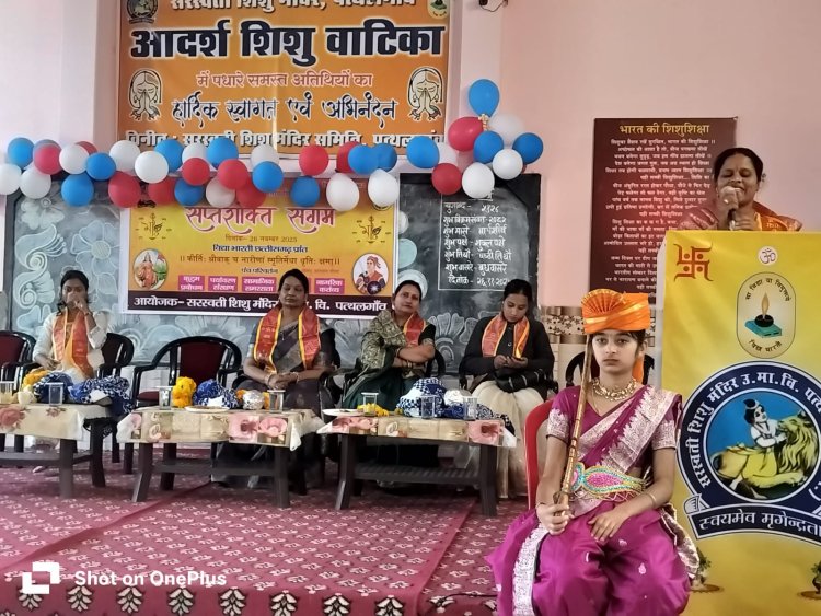 पत्थलगांव। विद्याभारती अखिल भारतीय शिक्षा संस्थान के तत्वाधान में समृद्ध एवं समाज परिवर्तन हेतु मातृशक्तियों के सामर्थ्य ,नेतृत्व एवं राष्ट्र निर्माण में उनके भूमिका को दृढ़ता रूप देने हेतु सरस्वती शिशु मंदिर उच्च.माध्य.विद्यालय पत्थलगांव द्वारा कार्यक्रम का आयोजन किया । कार्यक्रम के मुख्य अतिथि श्रीमती सरोज अग्रवाल जी अध्यक्ष अग्रवाल समाज महिला मंडल, कार्यक्रम अध्यक्ष श्रीमती संगीता सिंह जी अध्यक्ष नगर पालिका पत्थलगांव, विशिष्ट अतिथि सुश्री छाया लकड़ा जी चिकित्सक MBBS, मुख्य वक्ता सुश्री सोनू मंडल जी प्राध्यापिका गुरुकुल महाविद्यालय पत्थलगांव एवं श्रीमती सुमन अग्रवाल जी सचिव अग्रवाल समाज महिला मंडल इन अतिथियों द्वारा सरस्वती ॐ मां भारती की प्रतिमा पर दीप प्रज्वलित कर कार्यक्रम का शुभारंभ किया । कार्यक्रम के मुख्य अतिथि श्रीमती सरोज अग्रवाल जी के द्वारा कुटुंब प्रबोधन विषय पर टूटते परिवार की एकजुटता के विषय पर विस्तृत मार्गदर्शन किया।